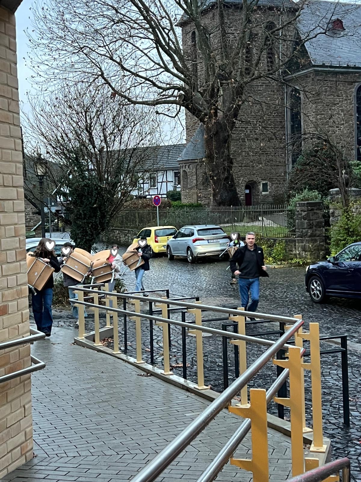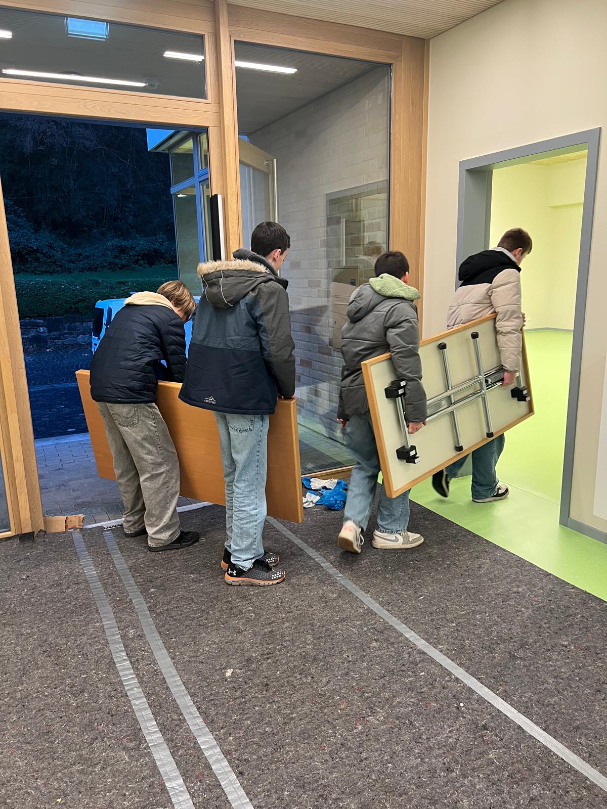 Unter kräftiger Mithilfe der Konfirmand:innen wurden gestern, 2.12., die ersten Räume der Kita und des Checkpoints wieder mit den eingelagerten Möbeln bestückt. Vielen Dank für’s Schleppen!
