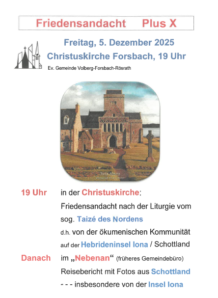 An jedem ersten Freitag im Monat findet in der Christus-Kirche in Forsbach im Anschluss an die Friedensandacht ein „Plus X“ statt.